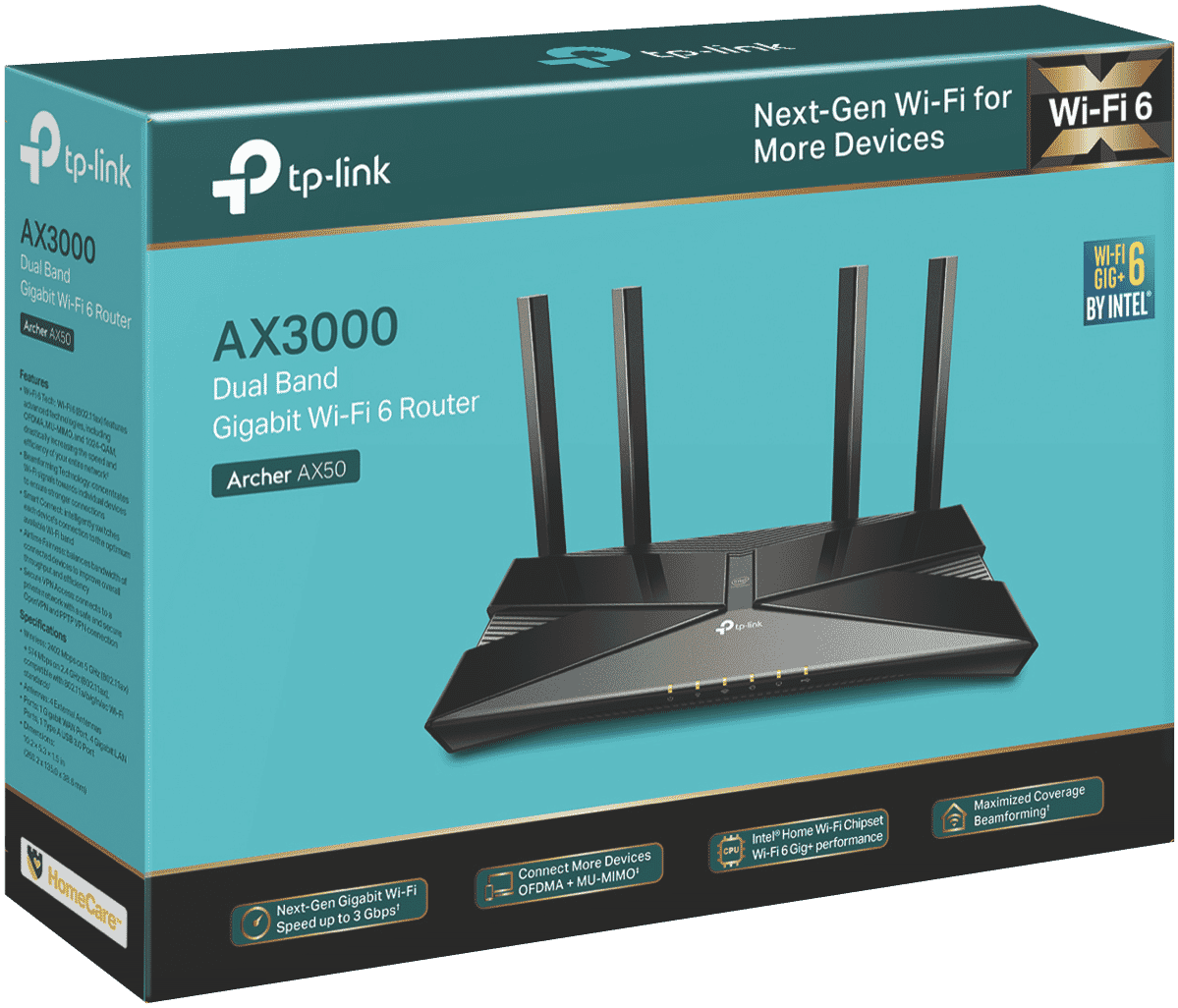 Archer Ax50 Ax3000 Dual Band Gigabit Wi Fi 6 Router Tp Link